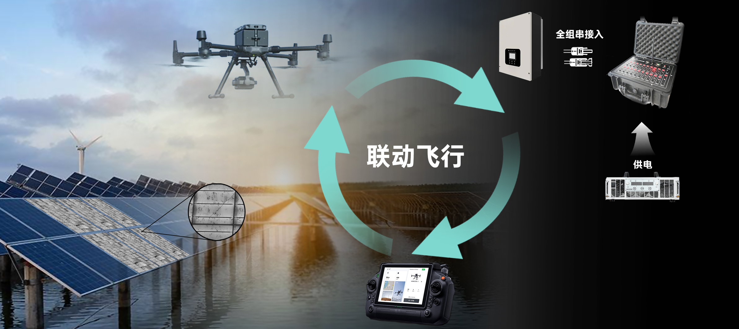 針對光伏電站EL上電特性,定制開發可同步控制1~20路組串自動切換上電模塊,實現真正意義上的無人化自動巡檢,可在匯流箱/逆變器處控制全部組串,實現200米范圍的無線通訊自動上電并聯動無人機航線拍攝。